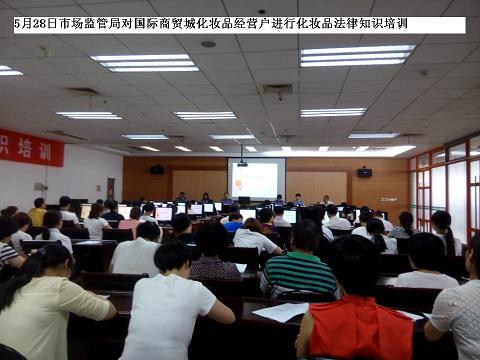 5月28日市场监管局对国际商贸城化妆品经营户进行化妆品法律知识培训